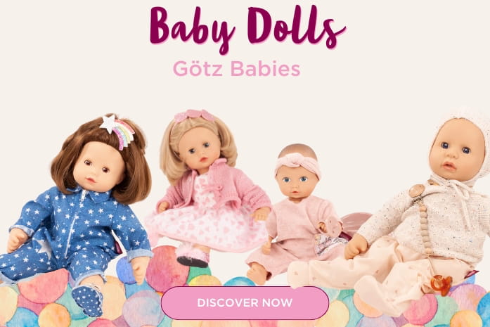 Götz dolls accompany children for a lifetime, thanks to the highest quality and safety. The wide selection of baby dolls andstanding dolls is complemented by stylish doll fashion and can be ideally combined with accessories such as dollcarriages andtrendy accessories.