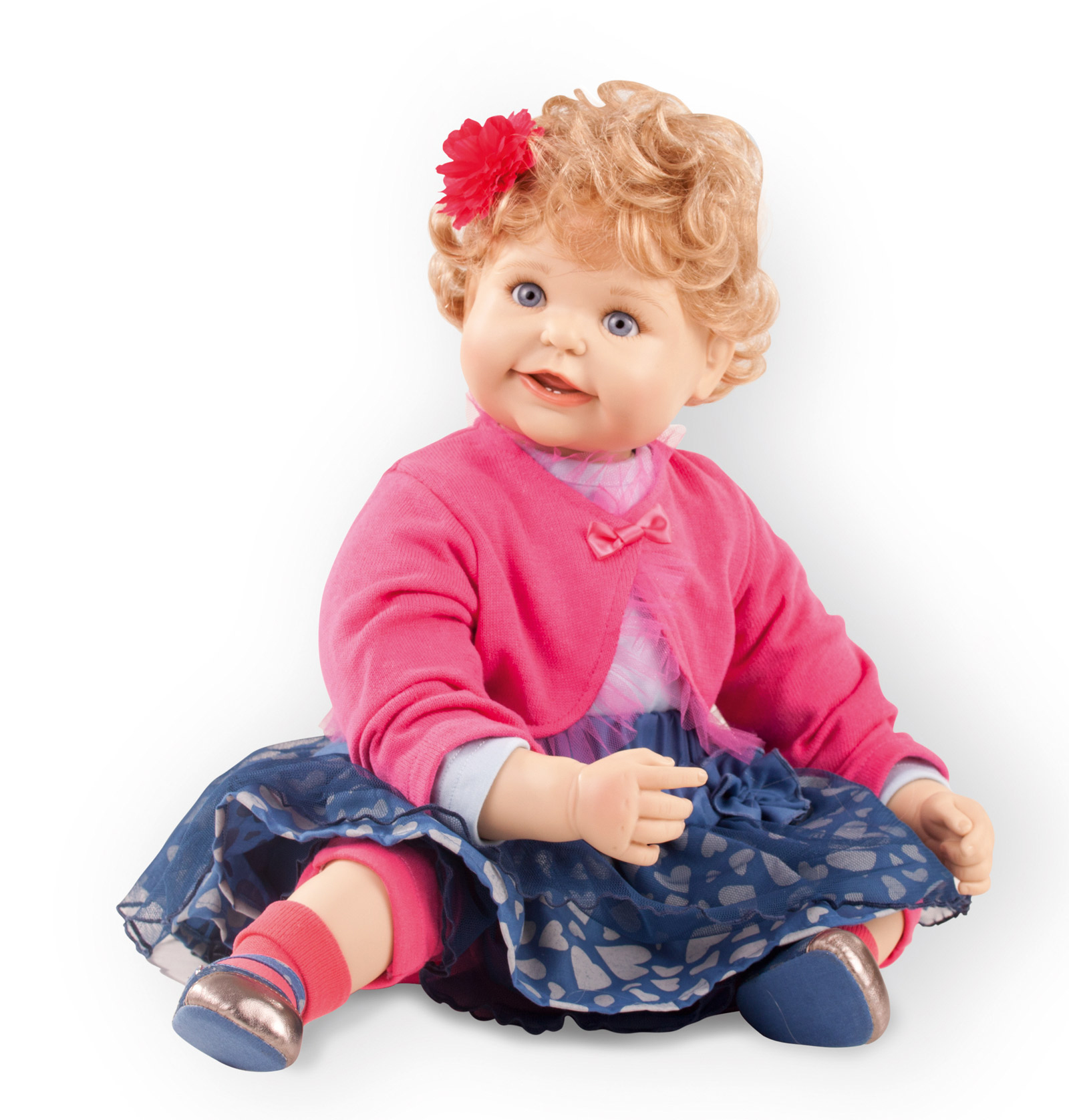 Warm eingepackt in ihre wunderschöne Strickkombination, kann für Marit die kalte Jahreszeit kommen. Sagar ihre Echtlederschuhe sind farblich auf ihr schönes Outfit abgestimmt. Ihre Mohair-Löckchen spitzen lustig unter der Mütze hervor und ihre haselnussfarbenen, mundgeblasenen Glasaugen leuchten mit der Herbstsonne um die Wette.
